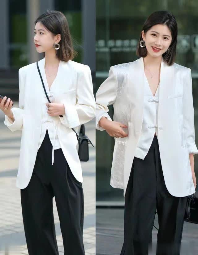对于上班族女性来说,也可以在通勤装的塑造中,利用新中式风格的单品。新中式小西装就是比较典型的存在,外观看上去挺廓有型且富有时尚质感,可以在优雅中诠释出几分干练气场。