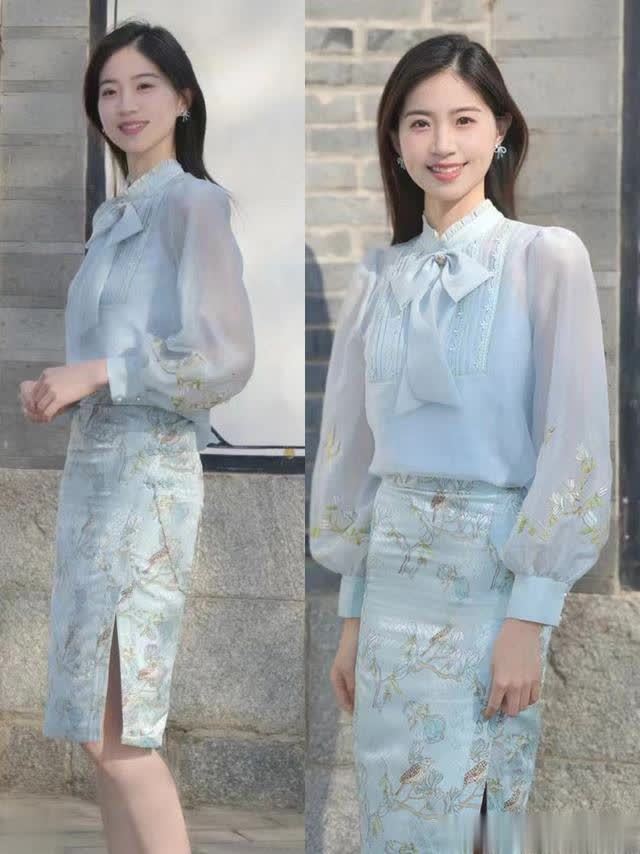 这件新中式半身裙,表面雅致古朴的图案,配合着浅蓝色的配色,显然可以帮助造型释放出十分优雅的韵味,非常具有辨识度。
